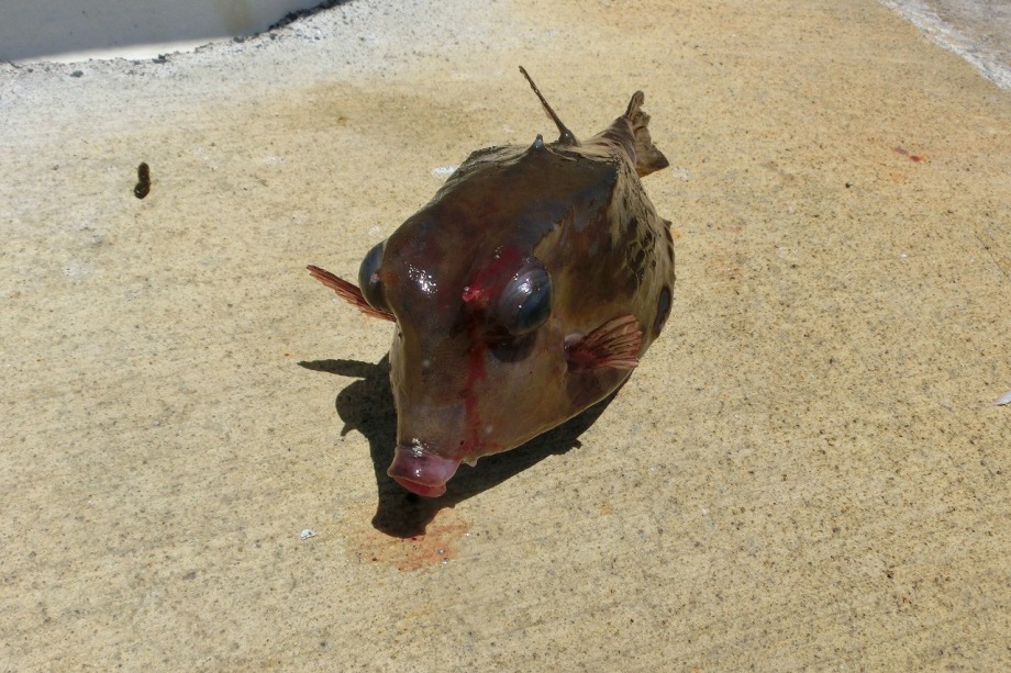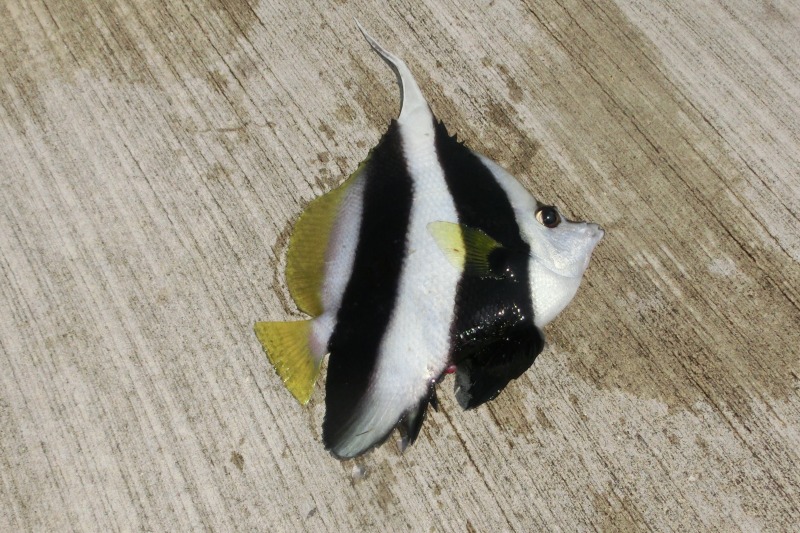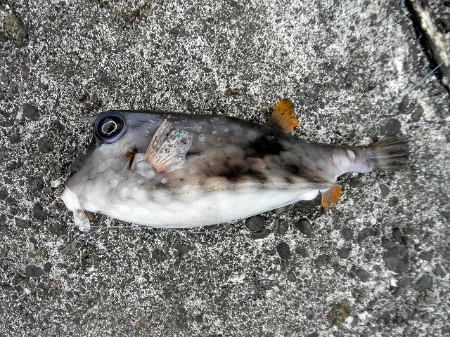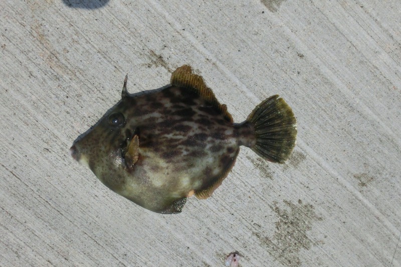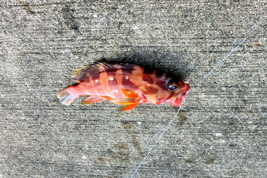 きた初めての釣りです。英哲君はフグやスズメダイ、ハタの子供など、色々な魚を釣りましたが、小さいのですべて海に