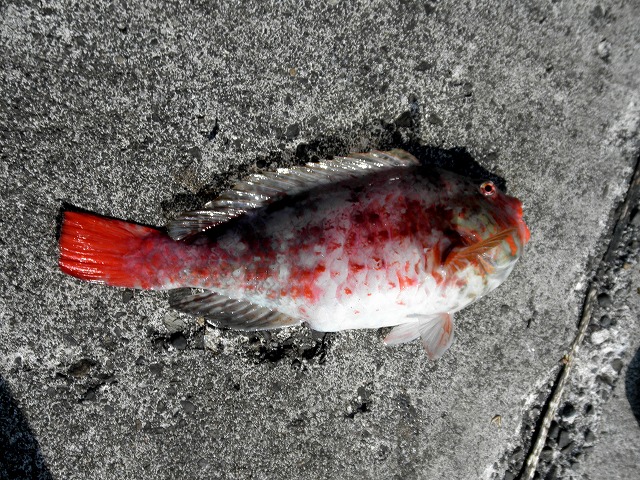 天気が良く、風もなく、暖かったので、釣り日和という感じでしたが、海の水が非常に冷たかったためか、まったく不調でした。