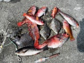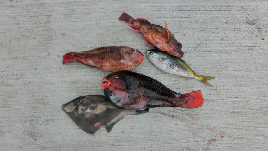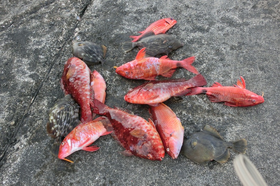 小澤さんは60cm位のワラサを2匹と釣ったのと馬場さんが真鯛を釣ったのが特徴です。ウスバカワハギも釣れ、色々な魚が釣れました。