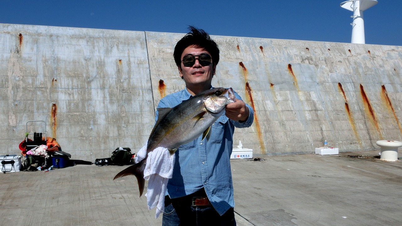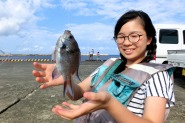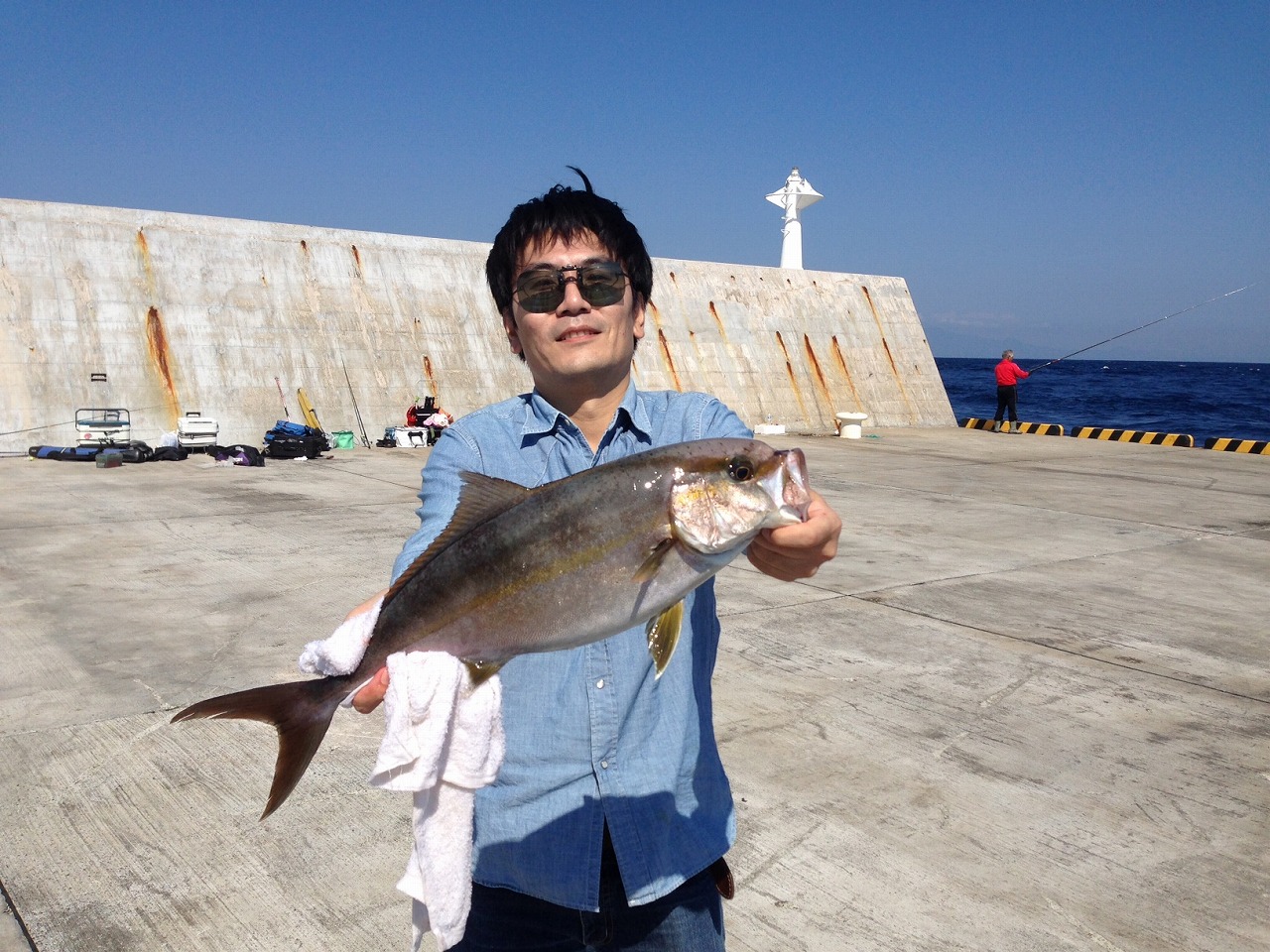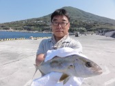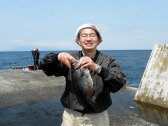 シマアジなどを釣りました。小澤さんは浮き釣りでメジナなどを釣りました。英司さんは堤防のヘチを釣って、ブダイやカワハギ