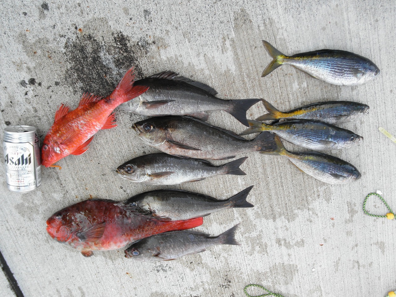 したので、釣りの時間は4時間半程度だった。底物は駄目だったが、メジナが良く釣れた。ムロアジなどもも良く釣れた。