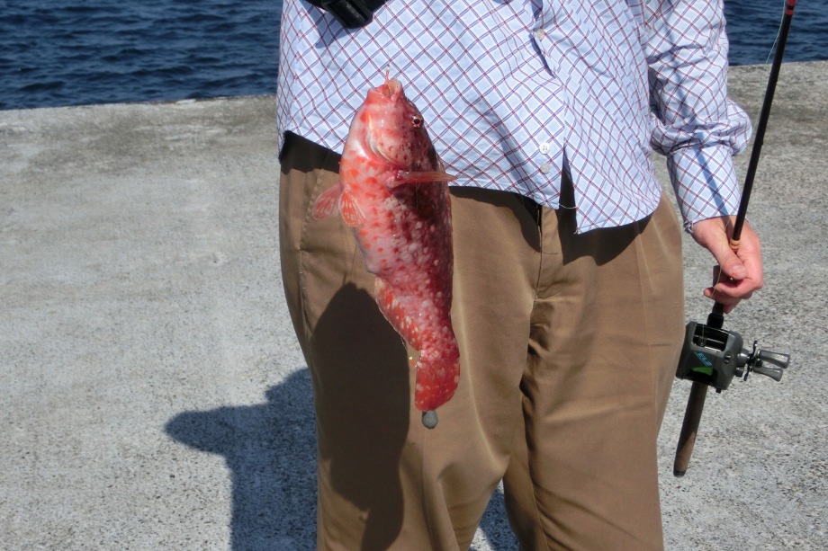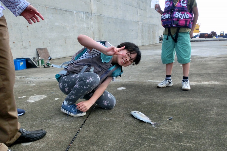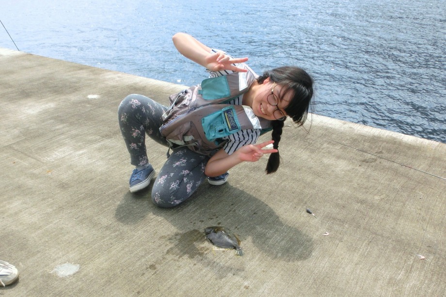返してあげました。鈴ちゃんはカンパチを2匹、カワハギを1匹を釣りました。堤防のヘチ釣りでカンパチを2匹も釣るとは